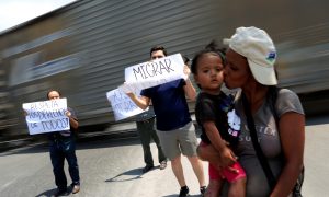 Activists and Central American migrants participate in a protest to raise awareness of the migrant crossing between Mexico and the U.S., on the outskirts of Monterrey