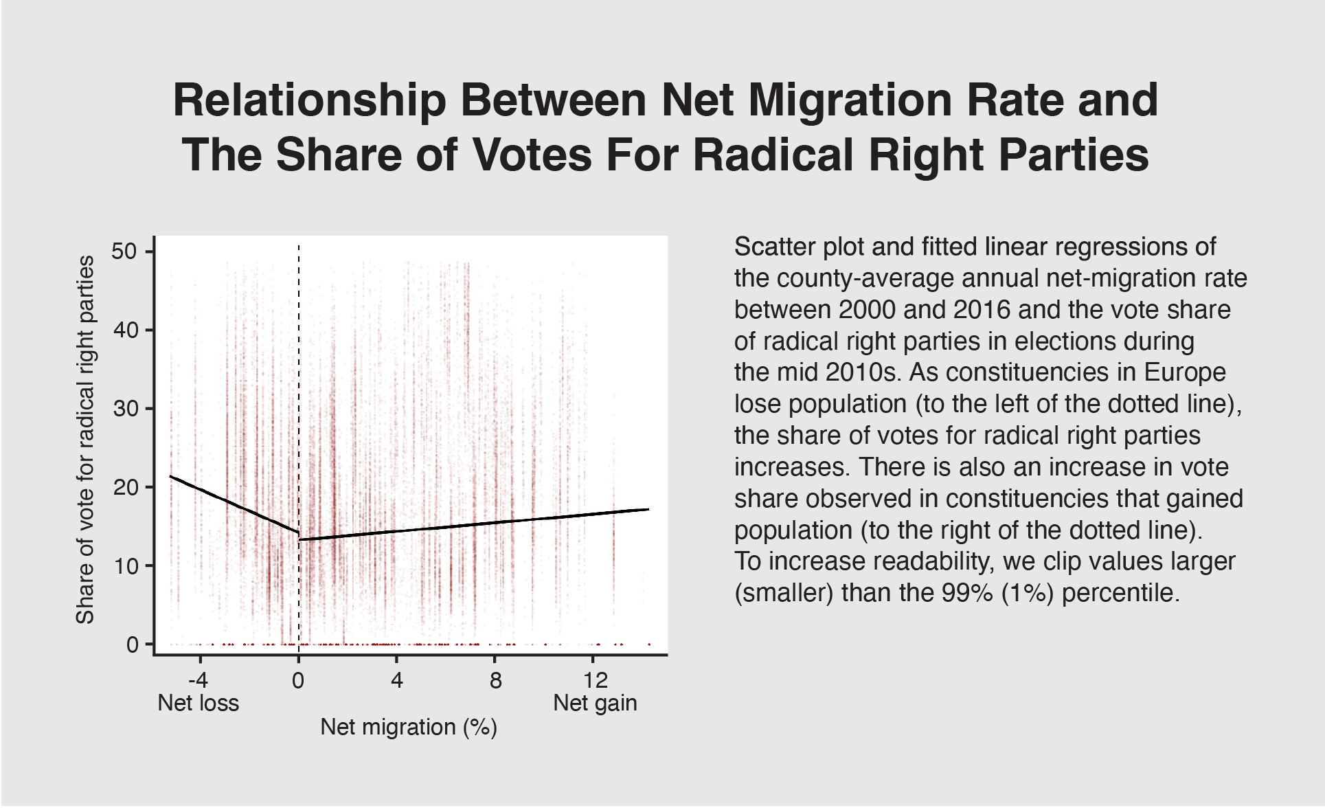 Fig 2. Relationship Between Net Migration Rate and the Share of Votes for Radical Right Parties