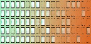 A grid of cell phones is displayed with phones disappearing into the background as you move from left to right